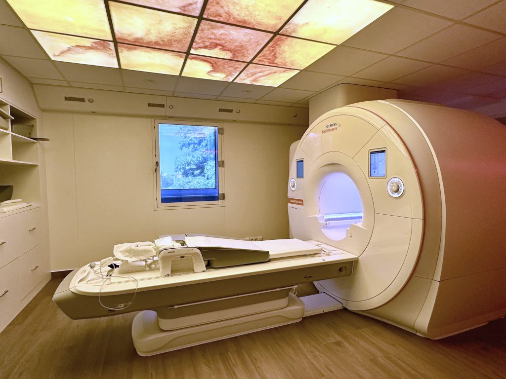 Technisch überzeugt das System durch eine leistungsstarke Gradiententechnologie und hochkanalige moderne und teils flexible Spulen, die eine sehr präzise Darstellung verschiedenster Körperregionen mit kompromissloser Bildqualität in der täglichen Praxis ermöglichen. Mit dieser innovativen Technik können wir nicht nur den gesamten Körper einschließlich des Gehirns, des Rückenmarks, des Bewegungsapparates, der Blutgefäße und der inneren Organe untersuchen, sondern auch MR-Mammographien durchführen, die uns auch bei Implantaten oder dichtem Brustdrüsengewebe eine genaue Diagnosestellung ermöglichen – und das alles ohne Röntgenstrahlung! Besonders in der Mammadiagnostik kommen spezielle hochkanalige Mehrkanal-Brustspulen zum Einsatz, die hochauflösende Bilder liefern und so zur Früherkennung und genauen Beurteilung beitragen.